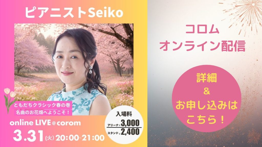 こんにちは。ピアニストの宮本聖子です。