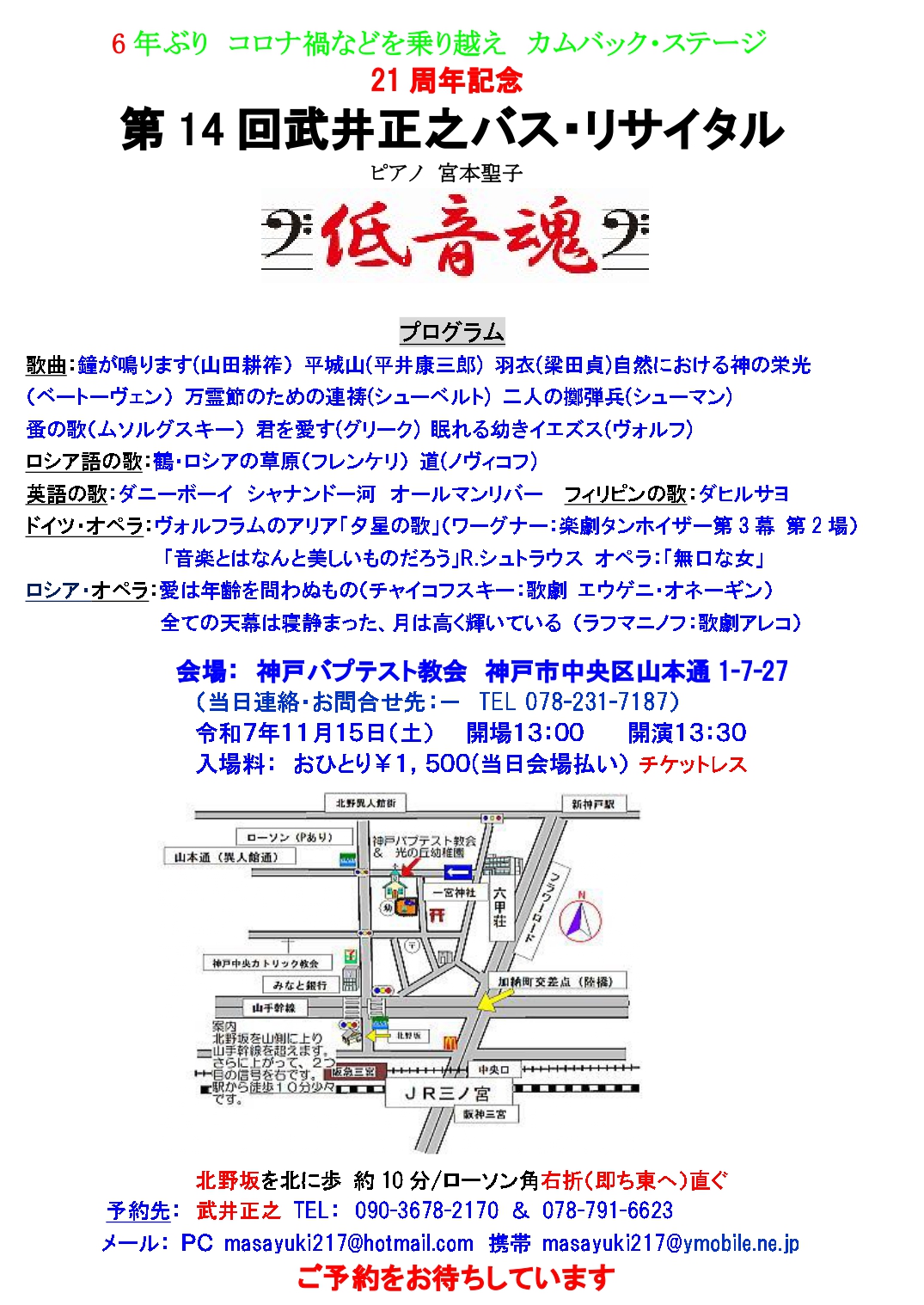 【出演】武井正之(バス) 宮本聖子(ピアノ)